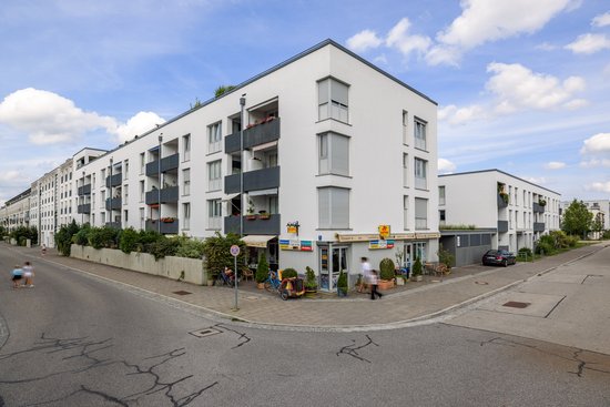 Vom Hof aus sind es zudem nur wenige Minuten zu den Messehallen und zum Internationalen Congresscenter. Auch die U-Bahnstation mit direktem Anschluss zur Innenstadt ist nicht weit. Gleich um die Ecke bieten die „Riem-Arcaden“ ein buntes Angebot zum Einkaufen und Essen. Und für die kleinen Dinge zwischendurch gibt’s den zur Anlage gehörenden, modernen „Tante-Emma-Laden“. Dort können die Bewohner auch ihren Lotto-Schein abgeben, und für einen kleinen Ratsch darüber, was es gerade wieder Neues gibt, sollte immer Zeit bleiben!